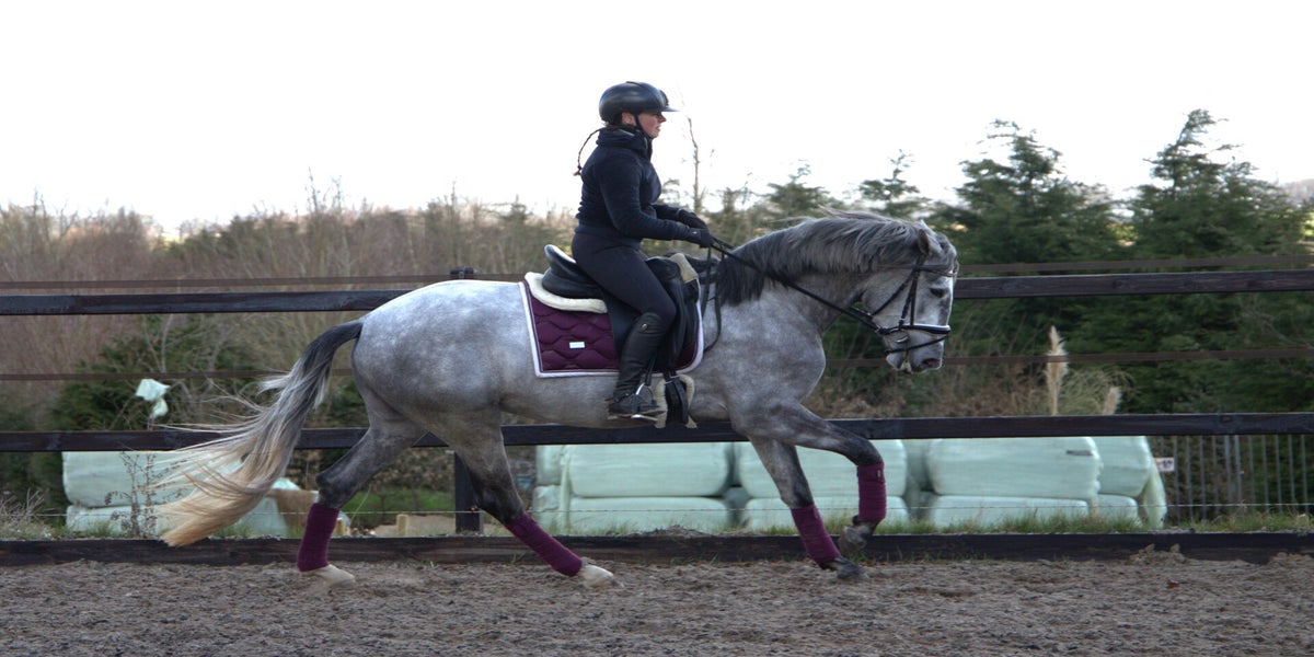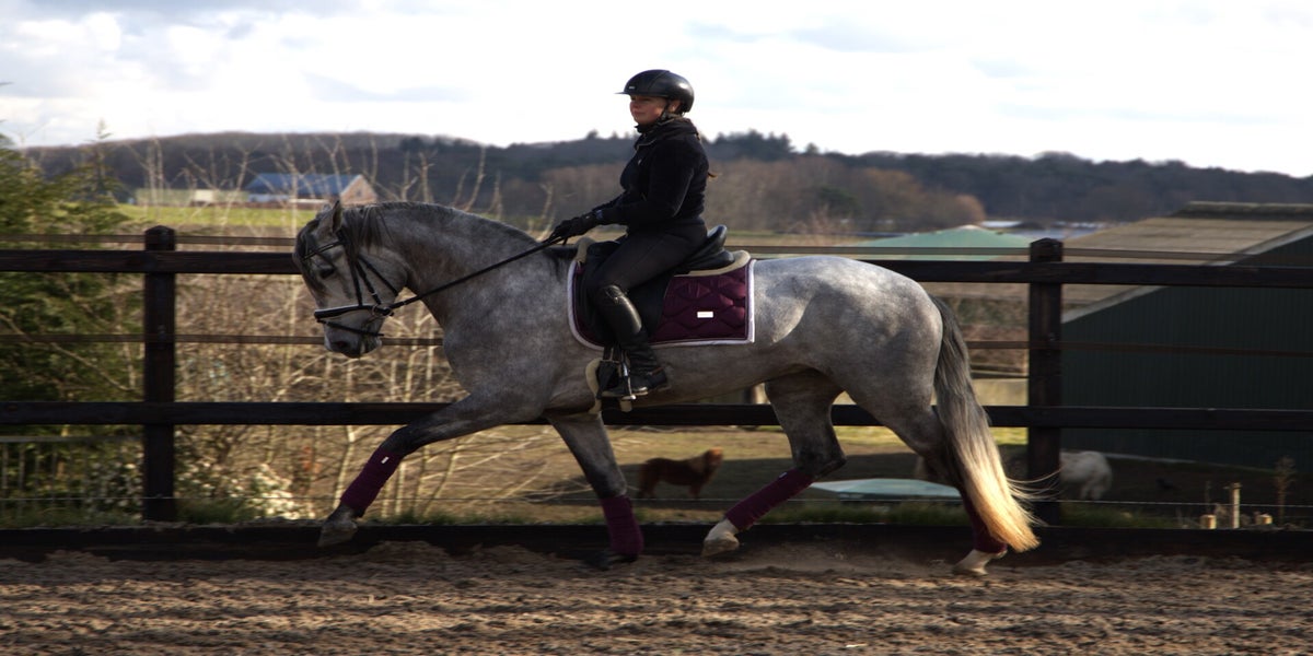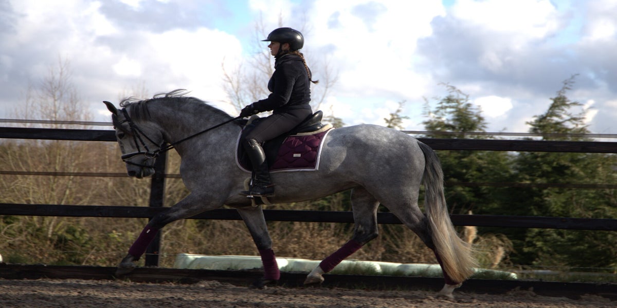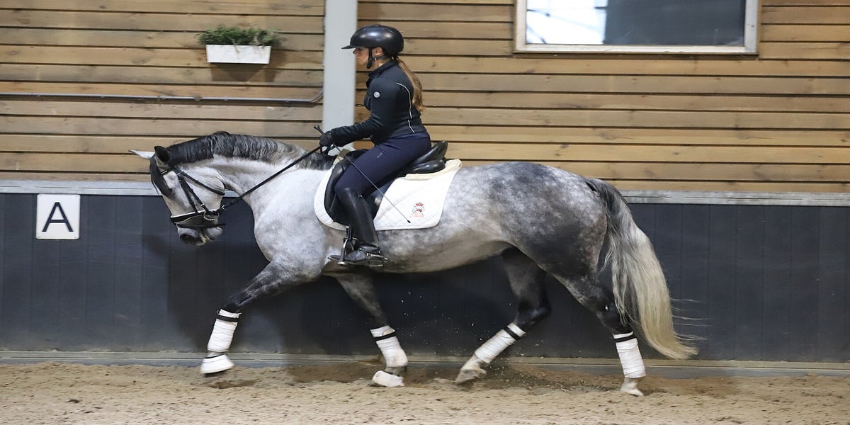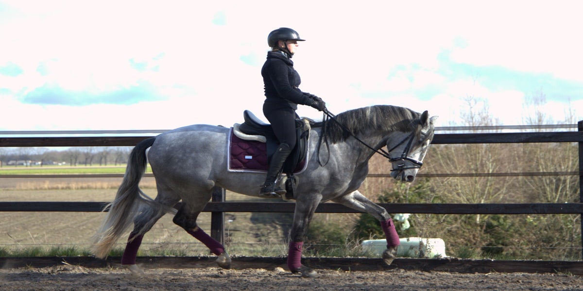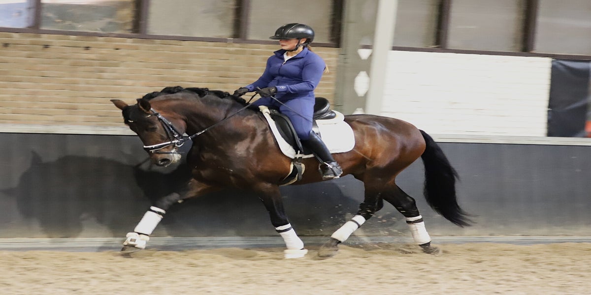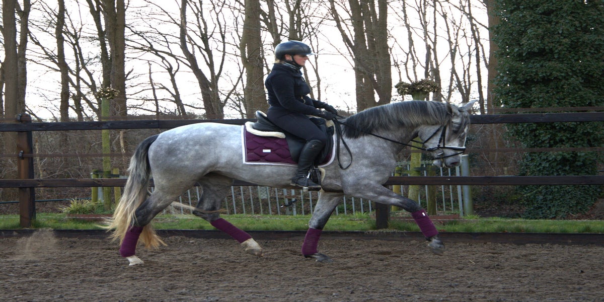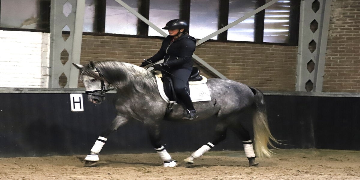 Deze super gave merrie is een aantal maanden onder het zadel, en doet dit super goed. Ze beheerst nu netjes de basis waarvan al een heel fijn verzameld galopje. Ze is niet kijkerig of sensibel