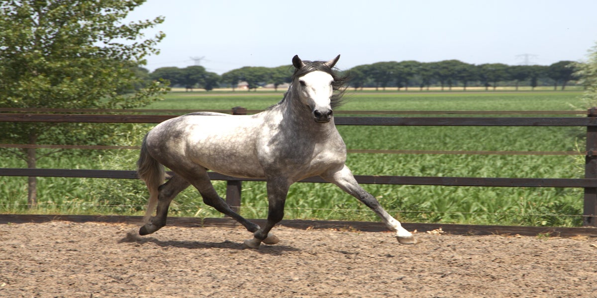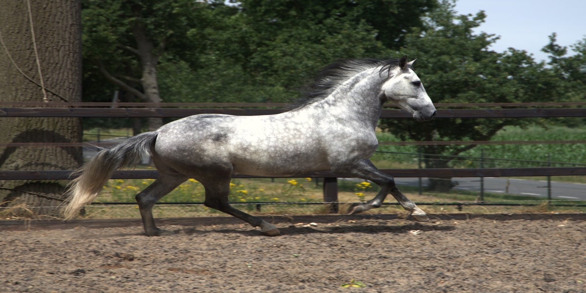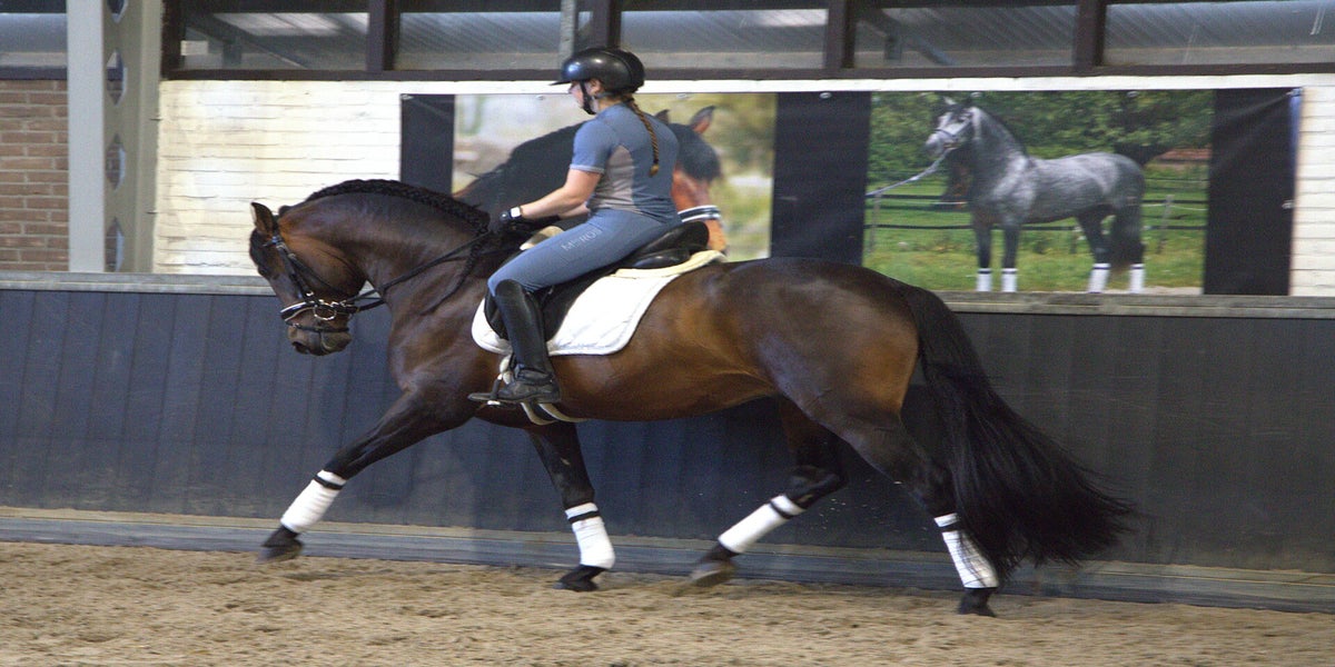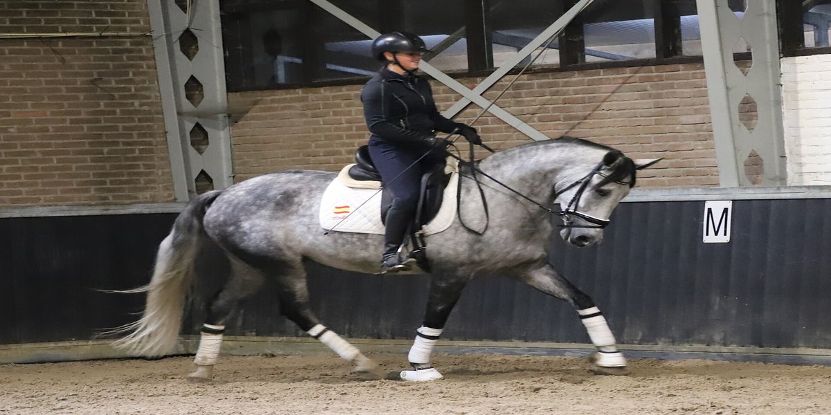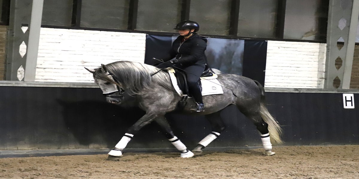 De basis beheerst hij netjes en hij ontwikkelt zich elke dag verder. Zou niet misstaan in de dressuurring